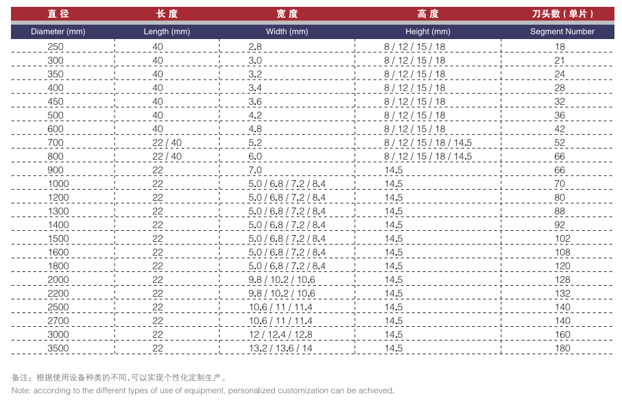 ★适合直径:250mm〜3500mm的圆锯片;